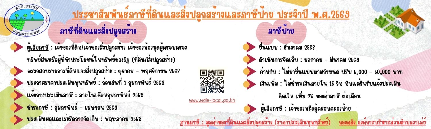 - ประชาสัมพันธ์ แจ้งประเมินภาษีและจัดเก็บภาษีที่ดินและสิ่งปลูกสร้าง ประจำปี พ.ศ.2568 15 พฤษภาคม 2568